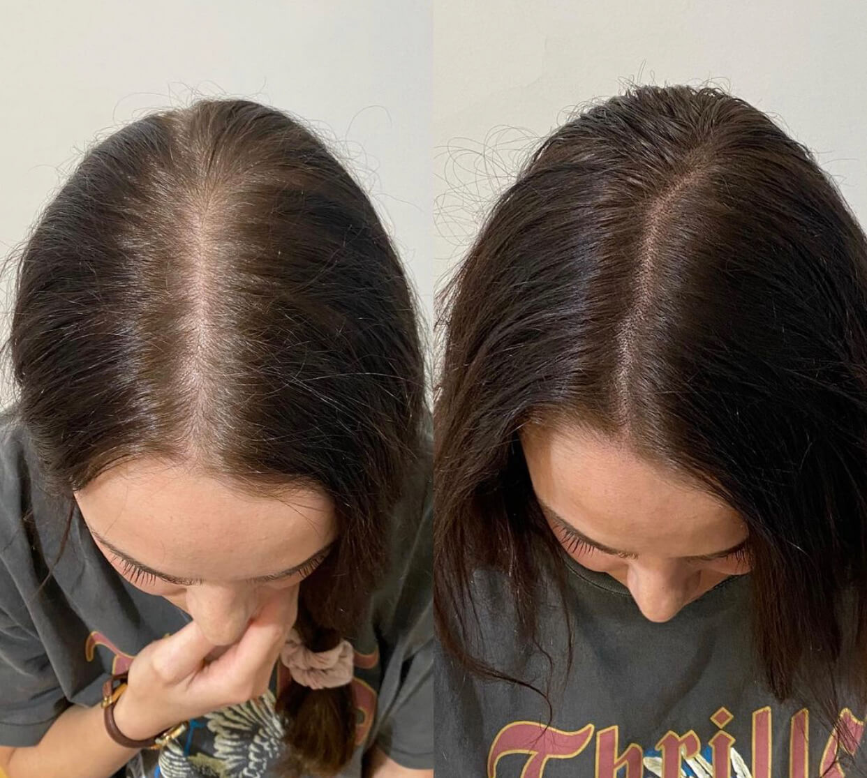 The result creates the appearance of tiny hair follicles that help thicken and restore the look of abundant hair.